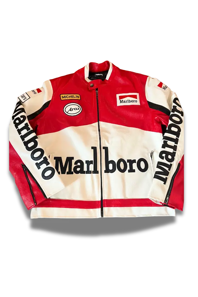 Mit ihrem kraftvollen Retro-Racing-Look, markanten Marlboro-Stickereien und kontrastreichen Farben bringt die Marlboro Racing Jacke – Classic Edition von LUXE Vienna die goldene Ära des Motorsports zurück auf die Straße. In den 1980er- und 1990er-Jahren war Marlboro Racing nicht nur ein Sponsoring – es war eine Stil-Ikone. Ob bei McLaren-Honda, Ferrari oder Ducati – das unverkennbare Rot-Weiß-Design stand für Speed, Siegeswillen und visuelle Dominanz. Große Namen wie Ayrton Senna, Alain Prost und Michael Schumacher trugen es im Cockpit, auf dem Overall – und in die Geschichtsbücher. Diese Jacke greift genau diesen Geist auf: Streetwear mit Haltung, Vintage mit Tiefe und ein echtes Statement für Motorsport-Fans, die heute noch den Sound der V10-Motoren im Ohr haben.